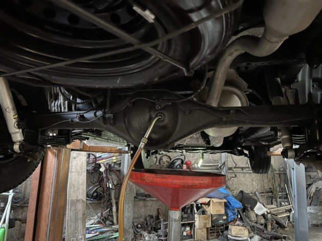 先月OS技研 LSDを組込させて頂いた業者様のハイエースは、デフの慣らし運転が終わりましたのでオイル交換にご来店頂きました。