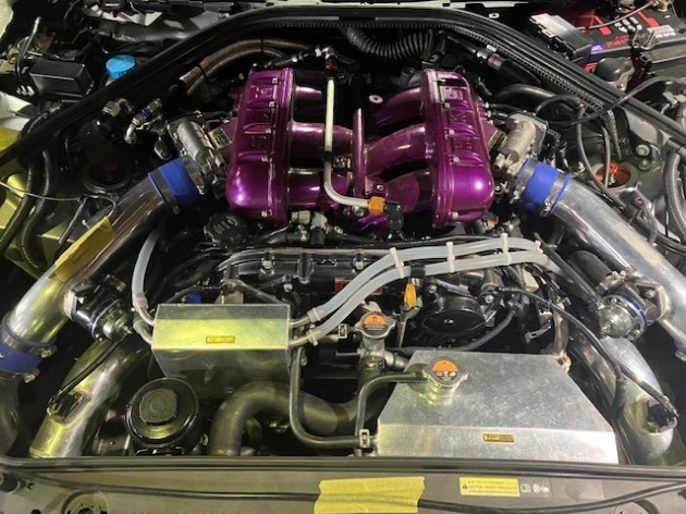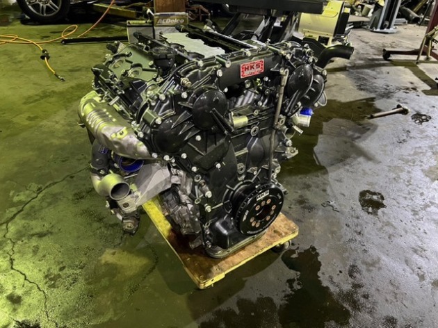 以前使用していた強化3.8L+GT900タービンに載せ替えますが、ハイオクガソリン仕様で924馬力、VP-MS109レースガソリンで1015馬力のエンジンです。