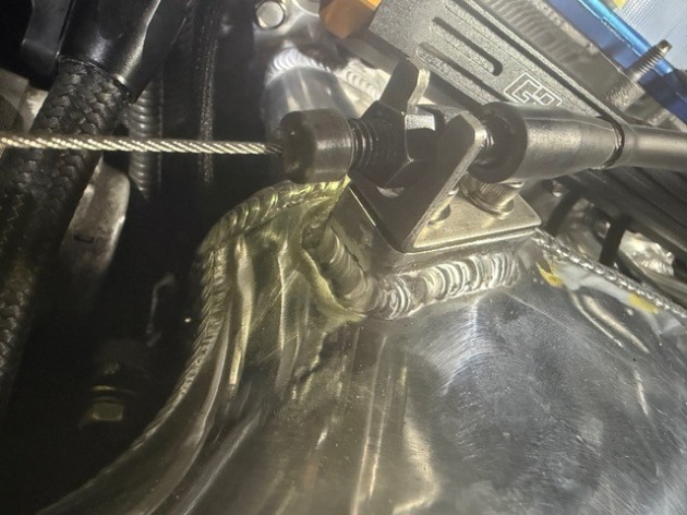 エアホース取出し口、スロットルワイヤー固定フランジ、エンジンオイルとATオイルレベルゲージ固定用ボス、エンジンアース用フランジを溶接しました。