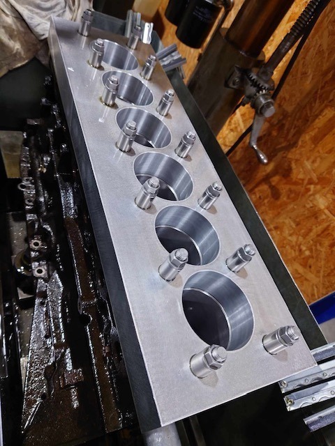 エンジンブロックはトルクプレートを使用してダミーヘッドボーリングを行いました。