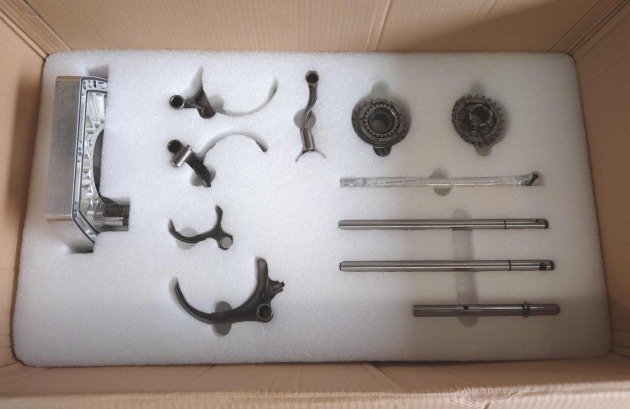 高強度ギヤとシャフト、ビレットセレクターフォークとビレットセレクターロッドで構成されおり、許容トルクも100kg/mですので、過酷なドラッグレースでも使用可能です。