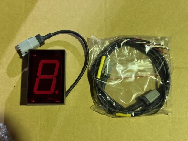 オプションで歪みセンサー内蔵カーボンシフトレバーキットとシフトインジゲーターも購入しました。