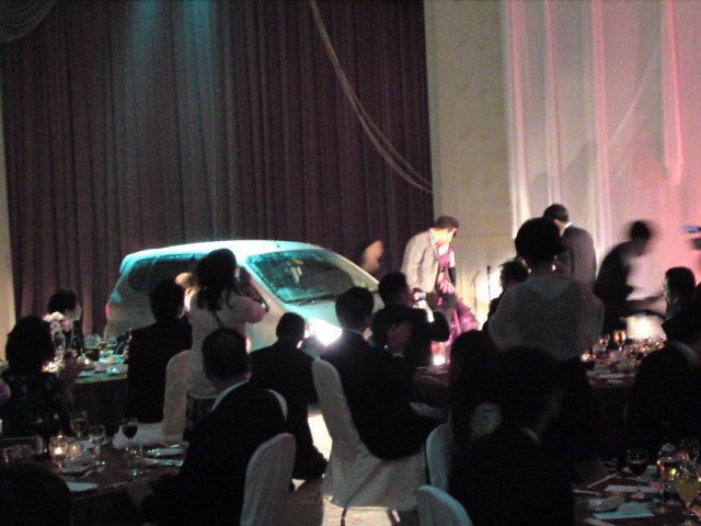 なんとお色直しの後 新郎の車に乗って会場の中に 入って来ました!