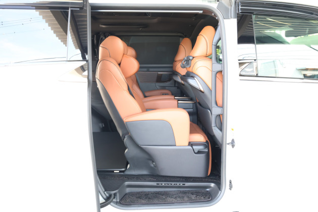 通常、ヴェルファイア用のESフロアパネルは4分割仕様ですが、今回はオーナー様のご要望により、セカンドシートを最前部までスライドさせ、空いたスペースにも荷物が積載できるよう、面積を広げた5分割タイプを製作しました。