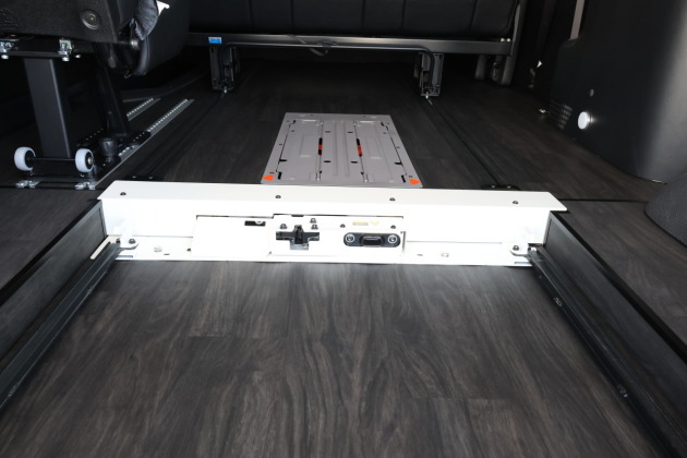 加えて、セカンドシート用のシートレールや、1人用のシートの固定&前後移動に使用するワンタッチレールを床に埋め込んでいます。