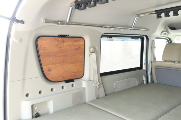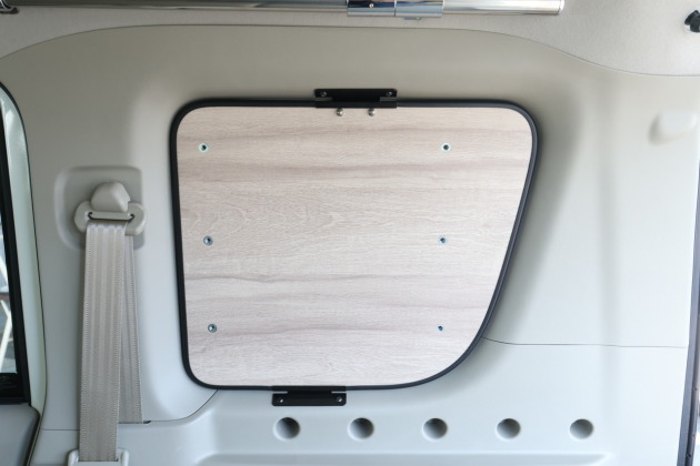 左右の窓にES TXウィンドウパネルを取付けることで、傷や汚れから窓を保護するのはもちろん、外からの視線を遮断する効果があります。デザイン性にも優れているので室内のドレスアップにもつながります。