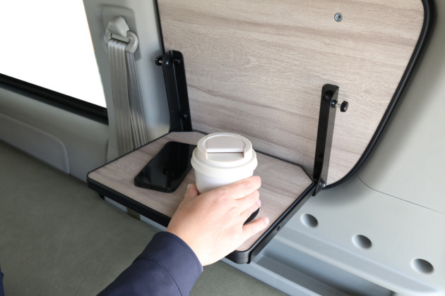 パネルには6個のM6ナットが埋め込まれているため、ナットを利用してオプションアイテムの装着が可能です。ES TXウィンドウパネルが収納スペースやテーブルに変わります。