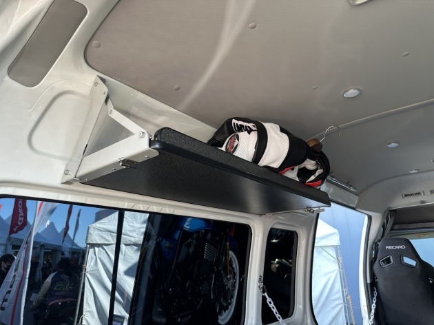今回は展示車両の内装やバイクを積載するために使用したESパーツを紹介!