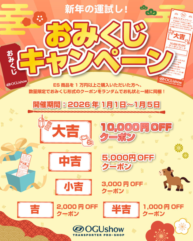 2026年1月1日から1月5日までの期間限定で、ES商品を 1万円以上ご購入いただいた方に、「おみくじ形式のクーポン」をお礼状と一緒に同梱!