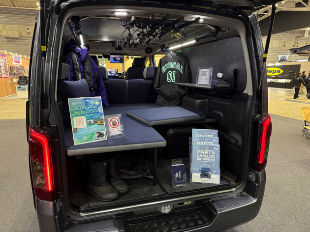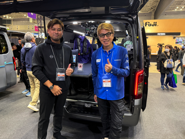 今年は日産自動車ブースにて釣り×キャラバンをテーマにした「NISSAN VAN CUSTOMIZE COLLECTION The 釣りキャラバン」が開催され、人気カスタムショップ3社(BodyLine、CRS、OGUShow)のこだわりが詰まったキャラバンが展示されていました。