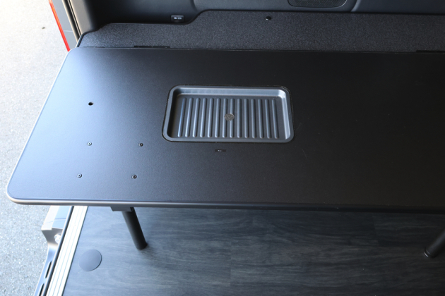今回はできるだけ普段使いの際邪魔にならないよう、荷室にカスタムしたSHダブルフリップベッドの助手席側のフリップベッドへギャレー設備を搭載。