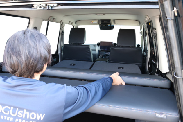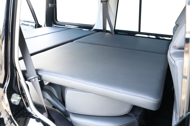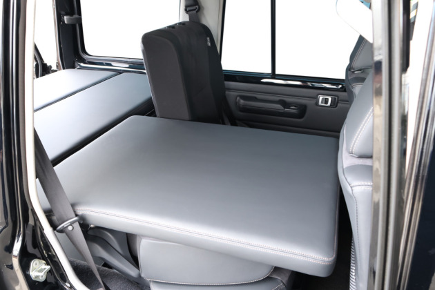 ベッドシステムの設置・収納・ベッドアレンジを考え、ベッドマットは「荷室側に2枚」「セカンドシート上に2枚」と合計4分割構成になっています。