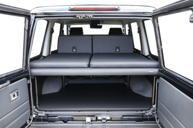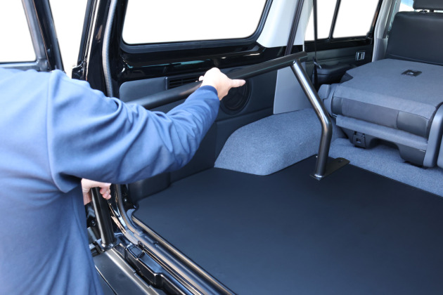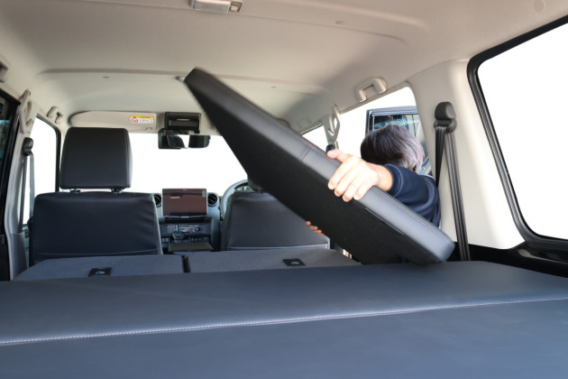 ベッドマットは重ねて荷室部分に載せておくことで、いつでも簡単に展開して車中泊を楽しめます。