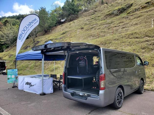 明日開幕の全日本トライアル選手権にトランポ仕様キャラバンを展示