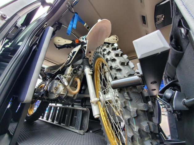 ボディに加工を加えず簡単に取付けることができるパーツとなっているので、あっというまに釣り仕様からバイク×車中泊仕様へ変身することができます。