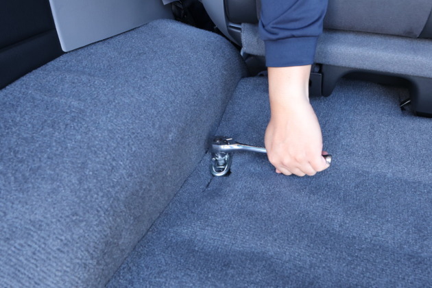 荷室にある4箇所の純正ボルトを10mmレンチなどを使用して取外します。