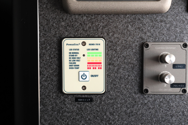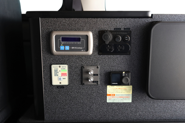 メインコントロールパネルと100Vコンセントなどは運転席側ベッドBOXの側面に取付け。