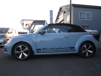 VWニュービートルカブリオレ お客様指定のロゴデータでサイドデカール製作取付!