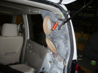 お客さんに依頼された、EKワゴンをオークションで落札しました。 このEKワゴンにセキュリティーとナビの取り付けです。 シートを全部はずし、配線作業です。 配線を綺麗にするため、内装をばらばらに