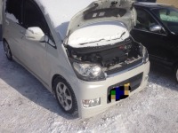 ダイハツ ムーヴ エンジン始動不良! 日曜日の夕方、お客様からエンジンが突然かからなくなったとの事で、代車を乗せてレッカー出動しました! 寒過ぎて携帯の画面が… それとも携帯古すぎかな?(笑) カチカ