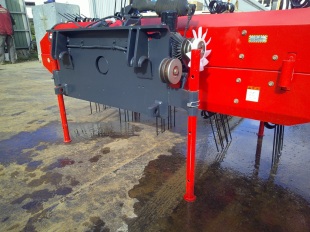 商品名 : 搭乗式ハンマーナイフモア(ハンドガイド)用集草機(両側回転)へーメーカ
