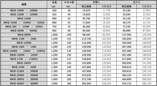 ◉ 特殊製作チゼル(ロッド)の価格表は下記からご覧いただけます。