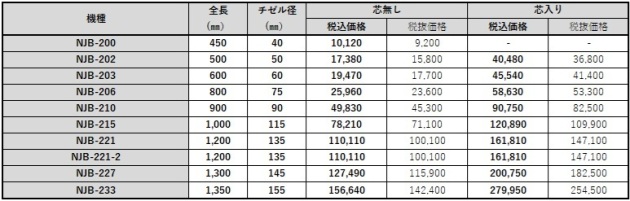 ◉ 特殊製作チゼル(ロッド)の価格表は下記からご覧いただけます。
