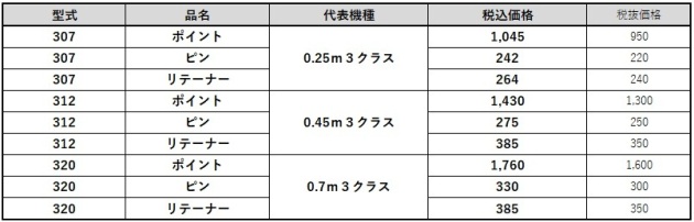 横ピン(コマツ専用)タイプ 【価格一覧】