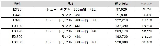 バックホウ用社外シューリンクの対応機種一覧<コマツ建機販売>