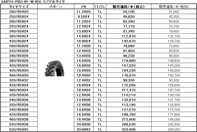 トラクター、フォークリフト用タイヤ【価格一覧】
