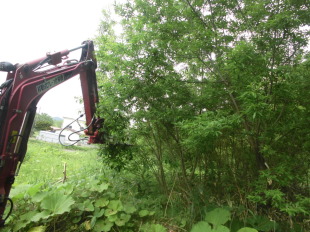 油圧ミニショベルでは従来、取り付けバックホウの油圧・油量不足により、ハンマーナイフモア式の草を粉々に破砕し除草するタイプでは「機械に負荷がかかるとすぐに止まってしまい作業にならない」「石が飛散して危ない」「導入予算が見合わない」などの声をよく聞きます。