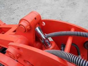 あらゆる角度から作業ができるので、固定タイプでは困難な現場も作業可能に。爪の開閉は本体内部の油圧シリンダで動くため、普段のバケット操作でOK。ピン2本の簡単脱着で、取替時間も大幅に短縮できます。