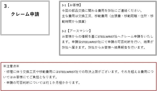 STEELWRIST社製チルトローテーターの保証(申請の流れ)について