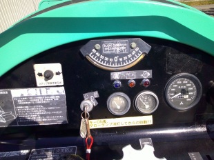 いつも行っている要領で、先にエンジンの圧縮比の測定を行い、エンジンの状態確認を行います。その他、下部ローラー、ラジエター、燃料タンク、電気回路、シャフトバランス、各部ベアリング等を分解を進めて行きながら整備内容を検討して行きます。