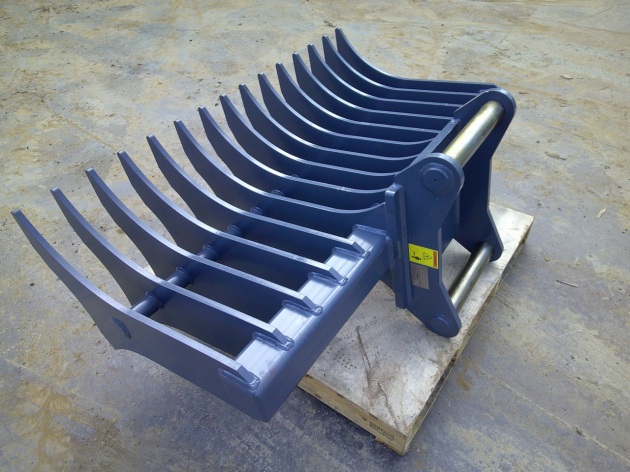 チルトローテーター(Steel Wrist製)に取り付ける開墾用レーキを納品