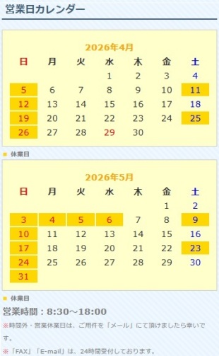 2026年(令和8年)5月祝日ゴールデンウィーク休業日のお知らせ