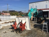 0.7クラス 特注 ツインヘッド撹拌機「ツインライザー」 ご注文を頂いていた、安定処理工に於ける「スタビライザー混合」や「バックホウ混合」の作業に威力を発揮する「ツインヘッド撹拌機」の納品をしてきまし