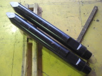 油圧ブレーカーチゼルです。 各ブレーカーメーカーに適合する差し込み形状(切り込み)で作成しています。水中部、高所、深穴などブレーカ本体を水に浸けたく無い場合や、腕のリーチが足りない場合などに活躍します
