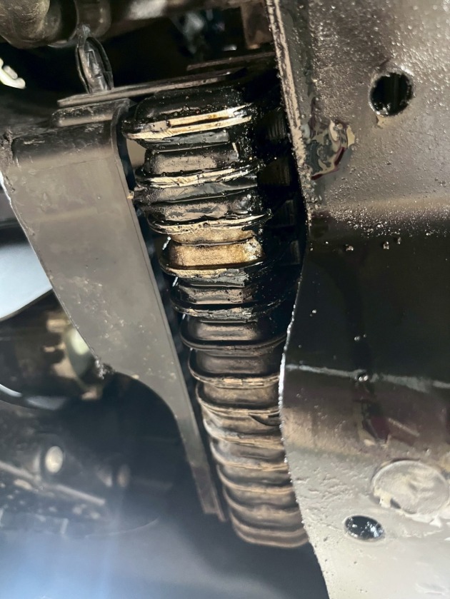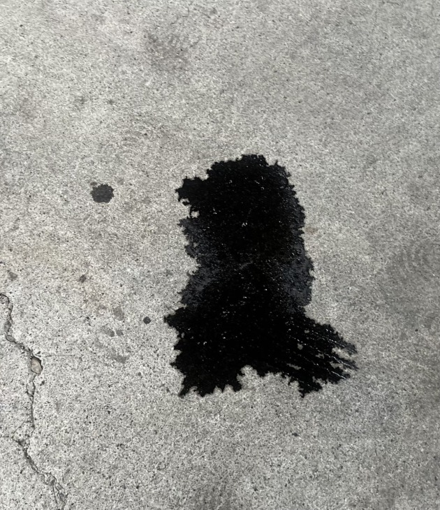 タイヤを装着してテストしようとすると、フロントの地面にオイル染みが出来ていました。
