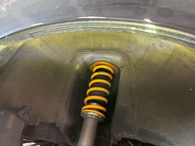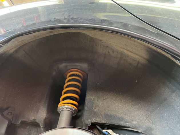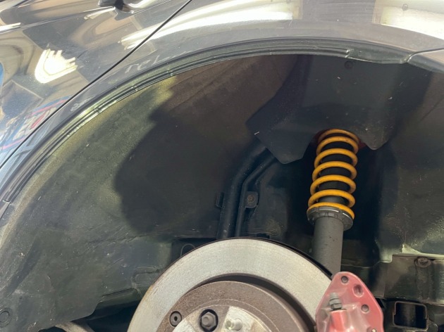 リアはスペーサーも入っていて外して引っ込めたくもないし、車高調整で上げたくもないという事で、フェンダー爪折り加工となりました。