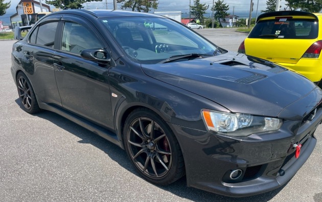 ランエボXのリアフェンダー爪折りとオイルクーラー(オイル漏れ)修理