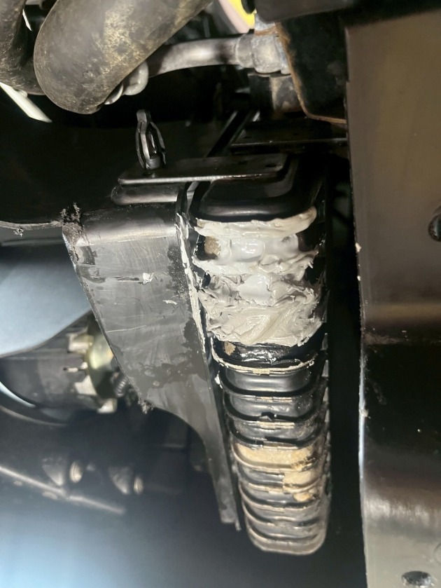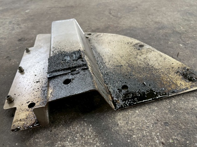 社外品のアンダーパネルが装着されていますが、オイルクーラー下が汚れています。