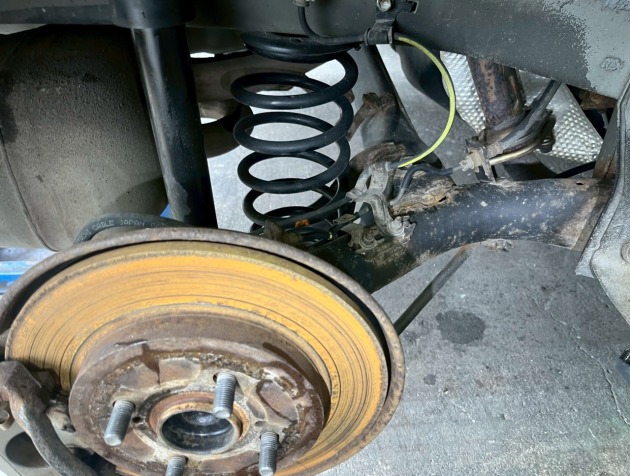 するとホーシングの溶接部分が腐食して割れており、危うくリアタイヤがもげてしまう状態でした。