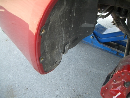 タイヤハウス内のカバーをいったんはずし クリップを入れ L型プレートをはさみ もとにもどします。