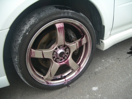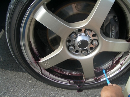この車はフロントブレーキのダストと泥がホイールに付着して固形化してしまい