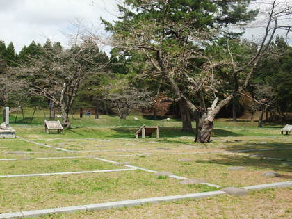 桜の花がまばらなトンネルを進み陣屋跡に到着。