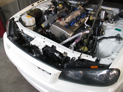 34GTRチューニング エンジンルームライン類新品交換 エンジン積み込み!
