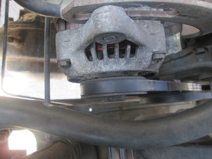 このエンジンのV型ポリベルトは削れてくるとベルト鳴きの原因になります。プーリーの両端よりベルト上面が下がっていたら交換のサインです。