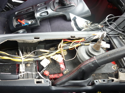 オーディオレス・FD3S・オーディオ取り付け 2010年6月4日 オーディオ取り付けスペースに追加メーターが埋め込みされたS君のFD・・・オーディオ取り付けの為に開けてみたら・・・なんとスゴイ配線がでてきた・・・・(汗)じっくりと やらせていただきます(汗)(汗)年数の経ったFDの内装をバラスのは割れそうで怖い・・・(冷汗)お時間ください・・・。