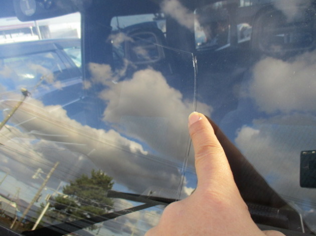 ヒビが入りとうとう真っ二つに分離してしまったフロントガラス・・・